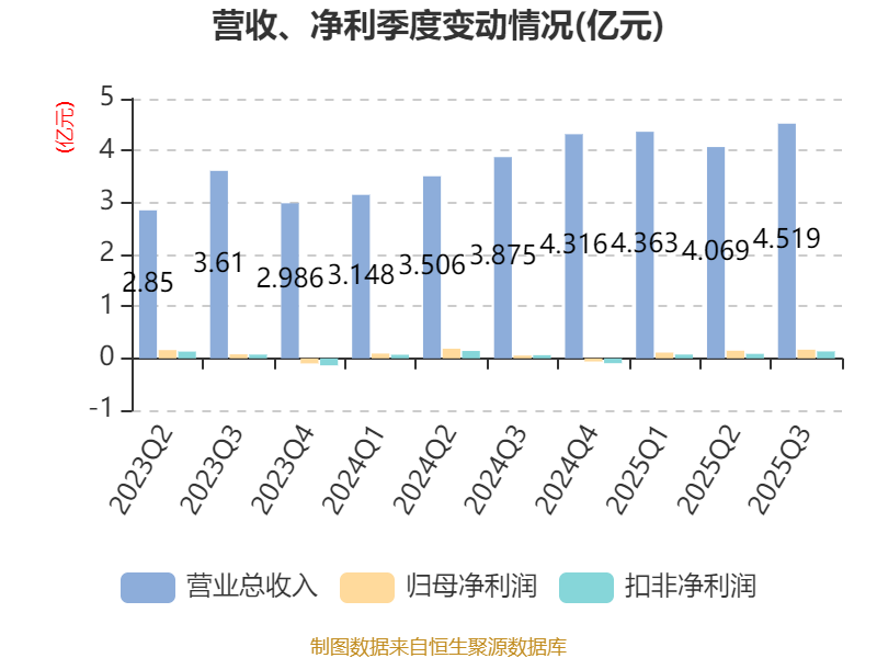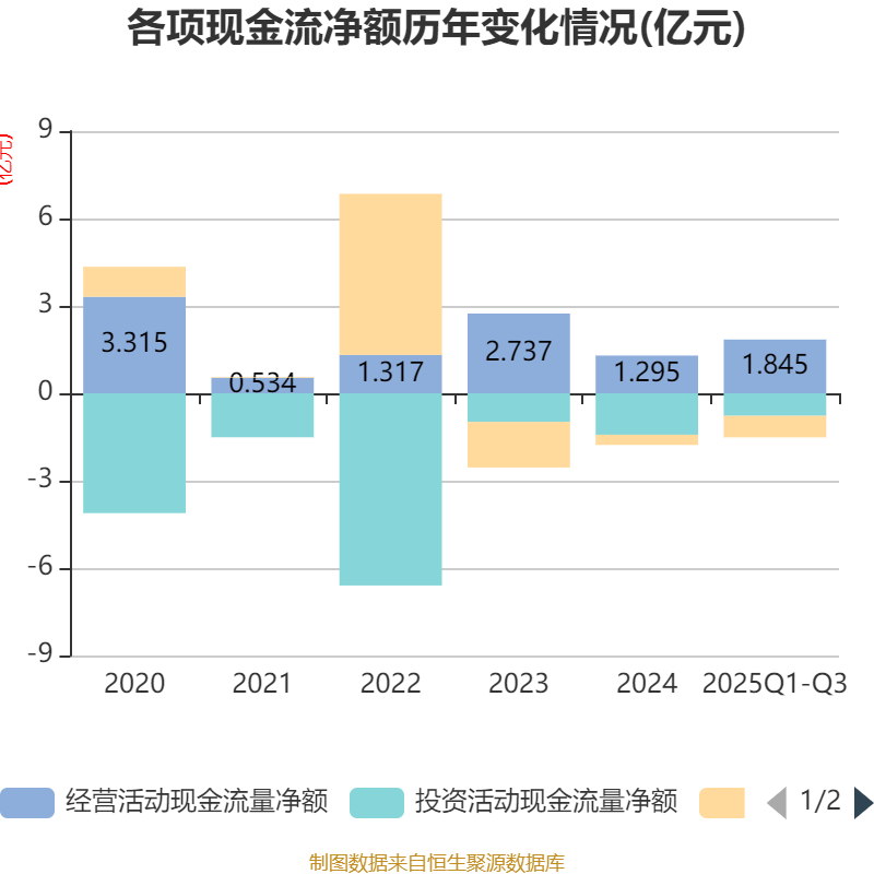 2025年前三季度,公司经营活动现金流净额为1.85亿元,同比增长896.23%;筹资活动现金流净额-7376.68万元,同比减少4836.15万元;投资活动现金流净额-7740.17万元,上年同期为-7535.69万元。