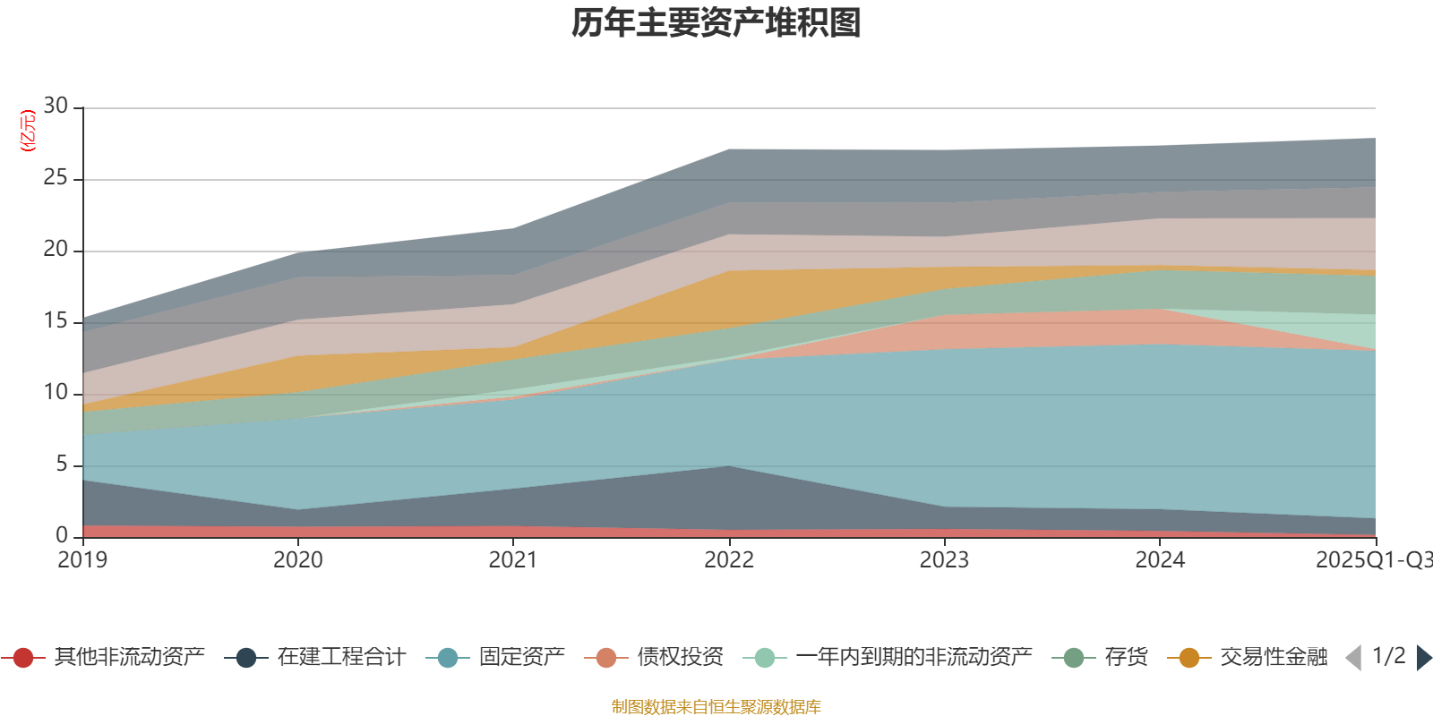 资产重大变化方面,截至2025年三季度末,公司一年内到期的非流动资产占公司总资产的8.68%,上年末为0;债权投资较上年末减少95.72%,占公司总资产比重下降8.66个百分点;在建工程合计较上年末减少23.88%,占公司总资产比重下降1.41个百分点;长期股权投资较上年末增加75.86%,占公司总资产比重上升1.13个百分点。