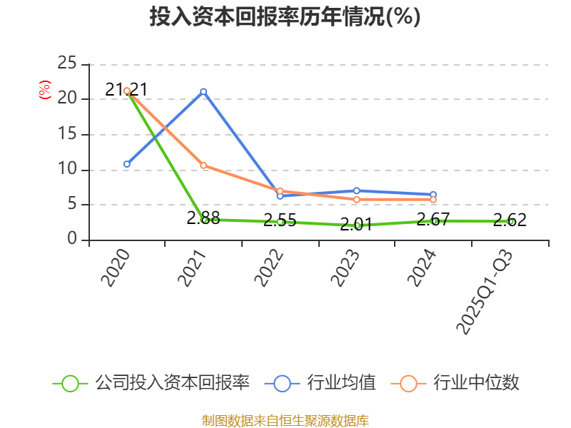 盈利能力方面, 2025年前三季度公司加权平均净资产收益率为3.19%,同比上升0.77个百分点。公司2025年前三季度投入资本回报率为2.62%,较上年同期上升0.15个百分点。